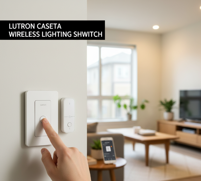 Control your lights effortlessly from anywhere with Lutron’s innovative wireless switch, featuring scheduling, brightness adjustment, and scene setting.