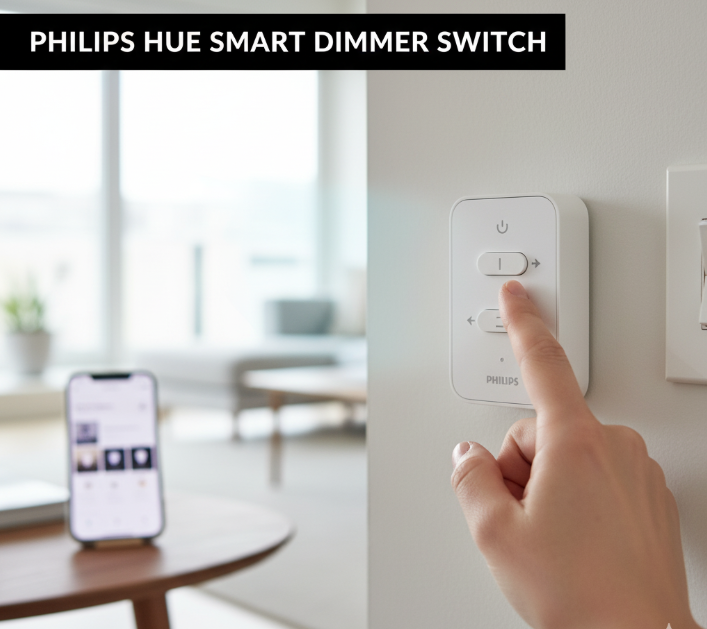 The Philips Hue Smart Dimmer Switch brings effortless control to your lighting experience.