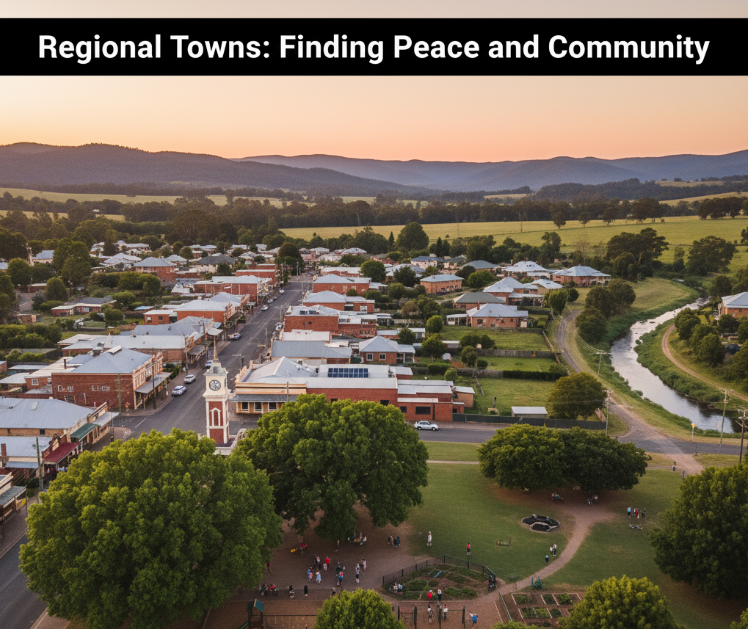- Regional towns provide tranquillity, community spirit, and lower living costs for those seeking a peaceful lifestyle.