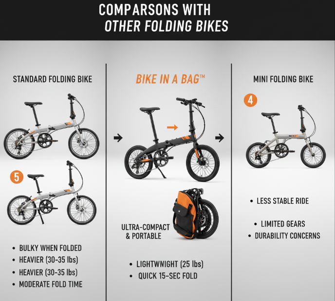 While considering a folding bike, it’s essential to compare the Bike in a Bag with its competitors in the market. The Bike in a Bag excels in bike performance and innovative folding mechanisms, making it a top choice for urban riders.