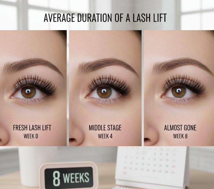 - A lash lift typically lasts between six to eight weeks, depending on individual lash growth cycles.