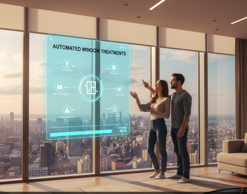 • Automated window treatments offer energy efficiency and convenience by adjusting natural light and privacy settings based on sunlight exposure.